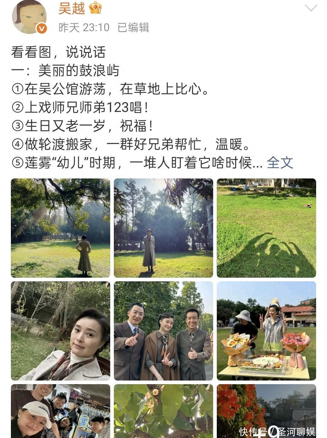 吴越那气质,真不是盖的,于和伟也是。整个剧组氛围欢乐得很。生日嘛,鲜花和蛋糕肯定少不了。吴越站在蛋糕前,头戴生日皇冠,双手比耶,满脸的开心。而且啊,吴越还晒出了和于和伟、徐峥的合照。徐峥戴着假发,于和伟戴着蓝色鸭舌帽。吴越的皮肤,那叫一个好,又有光泽又细腻。看看这合照。